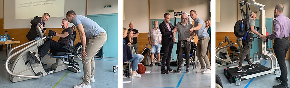 Besonders eindrücklich waren die drei Trainingseinheiten mit Patienten des Therapiezentrums. Mike Studer nahm sich viel Zeit, ihre Lebensumstände kennenzulernen, bevor er sie mit darauf abgestimmten Aufgaben „herausforderte“ – speziell beim gerätegestützten Training in unserem <a href=“https://www.neurokonzepte.de/produkte/litegait-gewichtsentlastung/“>LiteGait® Gangtrainer</a> und <a href=“https://www.neurokonzepte.de/produkte/nustep-ganzkoerpertrainer/“>NuStep® Ganzkörpertrainer</a>.