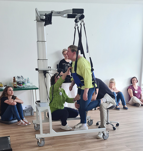 In zwei Gruppen hatten die Teilnehmenden die Möglichkeit, das Physioaspect-Gangtherapie-Konzept und unsere Trainingsgeräte, im Speziellen den LiteGait Gangtrainer und den NuStep Ganzkörpertrainer, kennenzulernen. Beide Gerätschaften bilden die Basis für effektives und effizientes funktionelles Gangtraining.